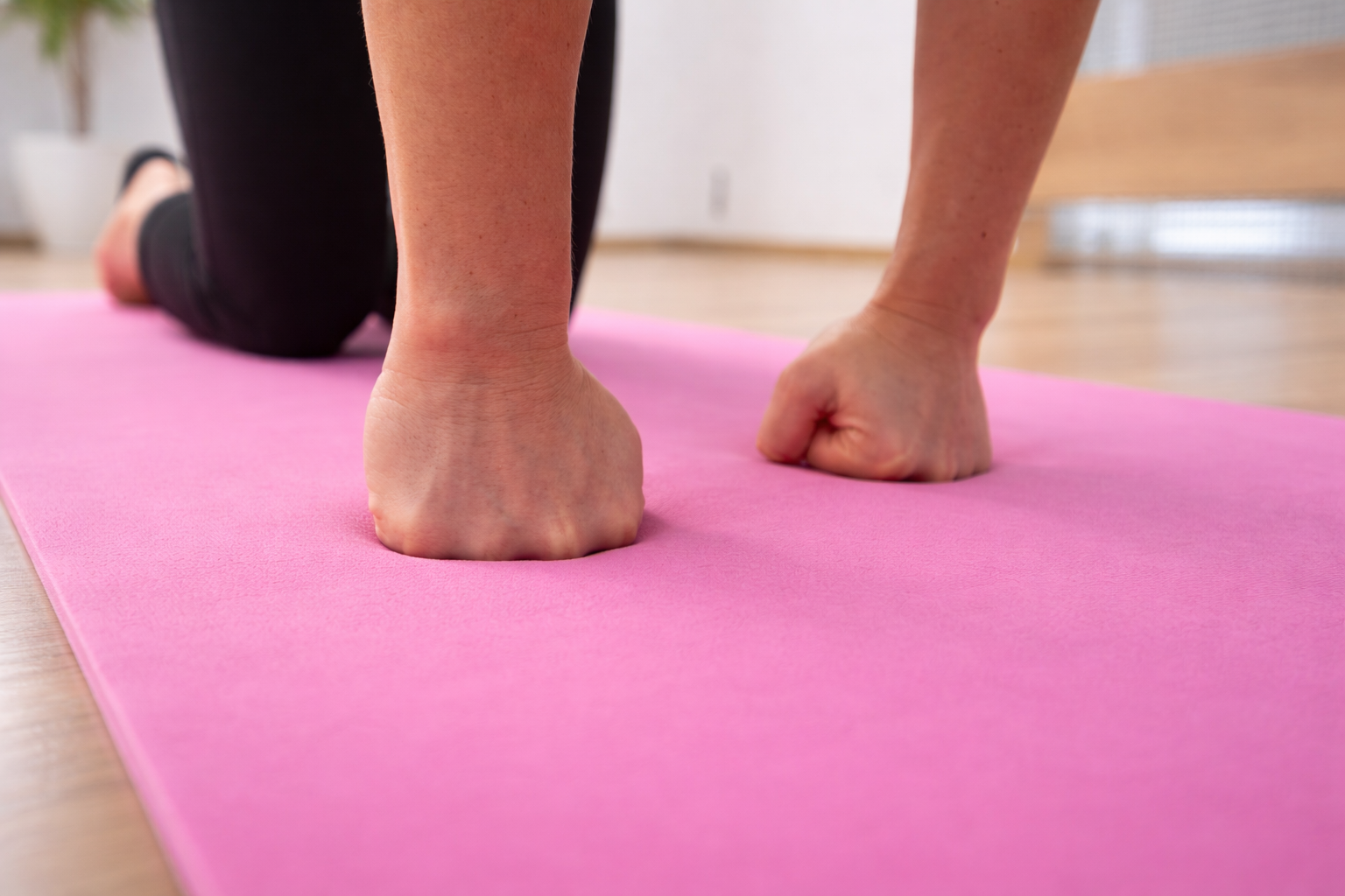 Gezielte Entlastung für die Gelenke – direkt in die Matte eingearbeitet. Kein extra Polster. Kein Verrutschen.